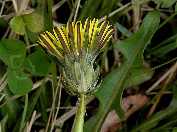 5. Onderkant van de buitenste lintbloemen niet roodachtig gestreept. Stuifmeel aanwezig................................................Hooilandpaardenbloem Sectie Celtica A.J.Richards