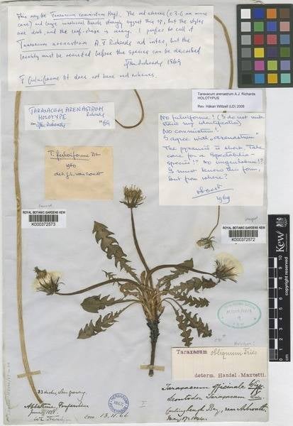 Holotype Taraxacum arenastrum A.J.R.