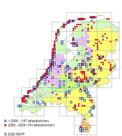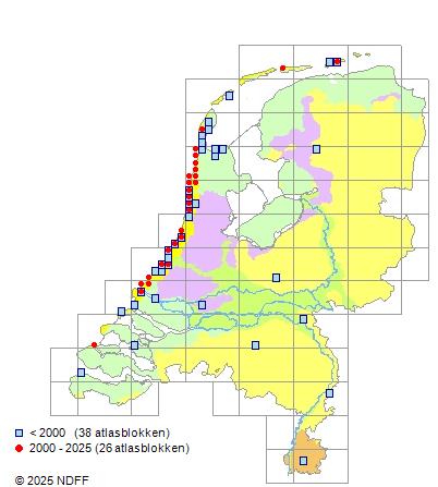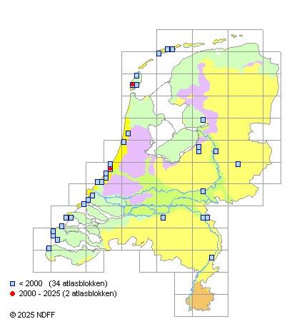 Verspreiding: Vrij algemeen in de duinen. Vrij zeldzaam op de Waddeneilanden.
