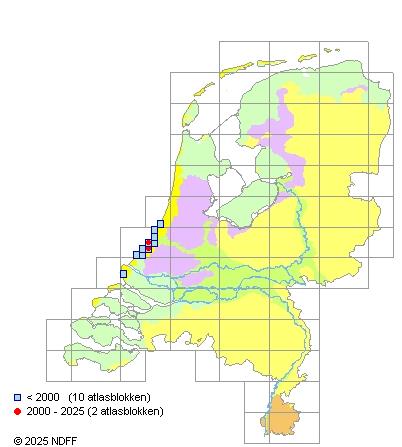 Verspreiding: Vrij zeldzame soort in de duinen van Voorne tot Noordwijk. Nader onderzoek naar de verspreiding is nodig. Komt waarschijnlijk niet in het binnenland voor.