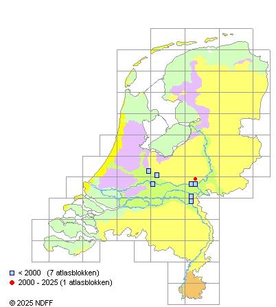 Verspreiding: Verspreiding onvoldoende bekend. Kwam vroeger voor bij Nijmegen. Langs de Rijn bij Arnhem en bij Utrecht.
