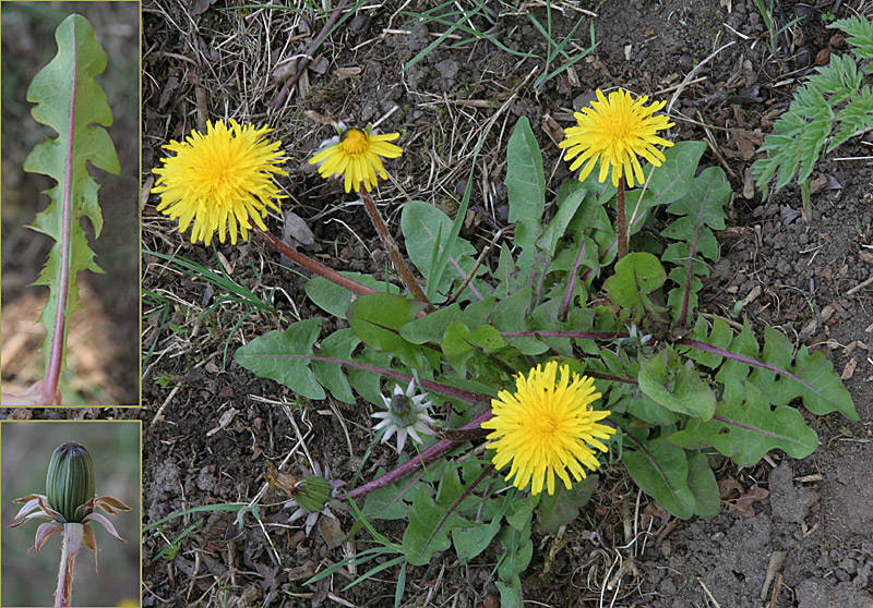 7.Bladstelen zijn duidelijk sterk rood gekleurd. Zijlobben zijn sterk getand en met vele overgangen van kleine tot grote tanden. Zijlobben meestal van stomp tot toegespitst..............................................Taraxacum lamprophyllum M.P.Chr.