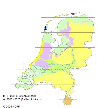 Verspreiding: Deze zeer zeldzame soort is bekend van Texel, Terschelling en Schiermonnikoog.