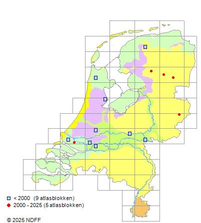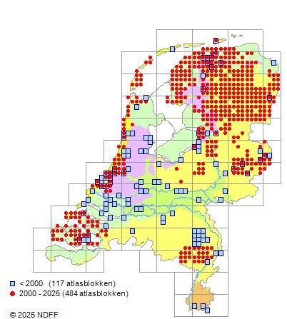 Areaal: Nederland, Zwitserland, Zweden, Denemarken, Duitsland en Polen. Adventief in Engeland