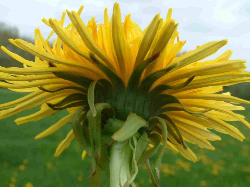 1a. Bladsteel smal gevleugeld. Zijlobben, 4-6(-7), sterk afstaand, tot vleugelvormig, smal driehoekig versmald in een korte top. De voorkant van de zijlobben met enkele tanden, ook een enkele tand aan de onderkant van de zijlobben. Eindlob breed driehoekig pijlvormig, vaak even lang als breed, kort ingesneden, met enkele grote tanden, vrijwel stomp Interlobben vaak sterk gekleurd. Omwindsel teruggekromd, niet gerand, meer dan 3,5 mm breed. Bloemknop niet berijpt...................................Taraxacum hepaticum Railons ( Fig. 2,3,5 )